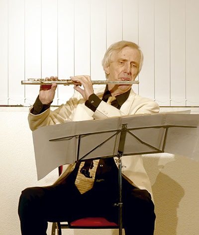 Miyuki Brummer (Klavier) und Klaus-Peter Riemer (Querflöte) mit Kompositionen von J. Massenet, G. Donizetti, W.A. Mozart und J.S. Bach - dessen bekanntes „Air“ dem Flötisten auch als kurzweilige und willkommene Demonstration der Unterschiede deutscher und französischer Spieltechnik diente.