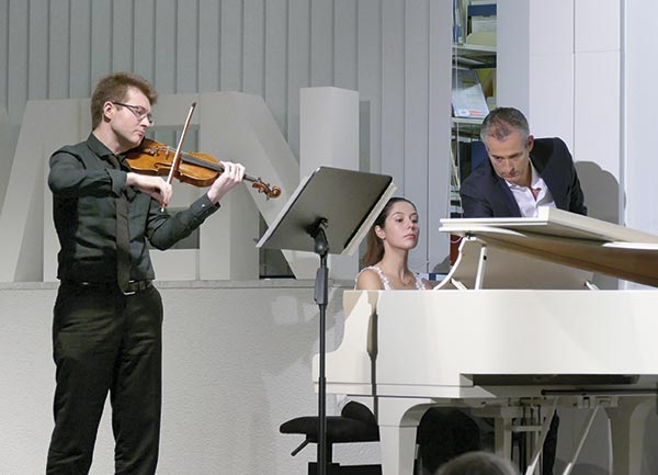 Alina Bercu (Klavier), Dragos Manza (Geige) und Michael Becker (Bratsche) spielten am 25. September in der Musikbibliothek Düsseldorf gemeinsam und im Wechsel die folgenden Werke: